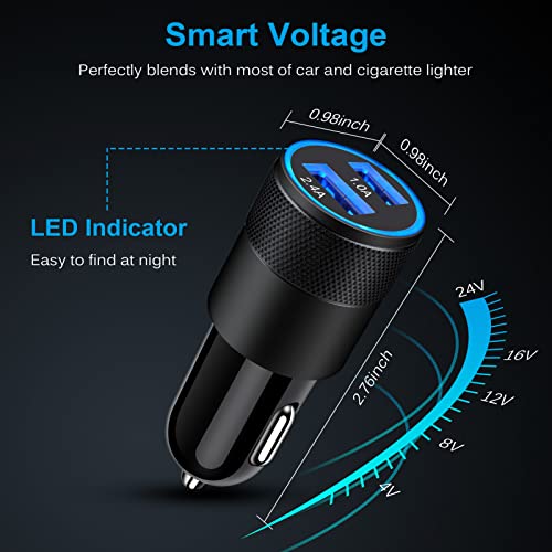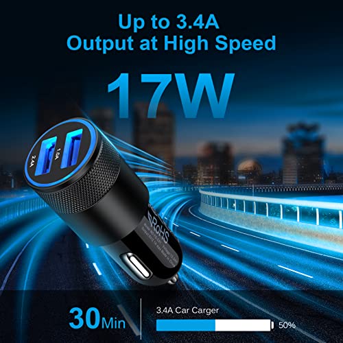 Schnelles Laden: Das Auto Ladegerät Zigarettenanzünder lädt Ihre Geräte mit einer Gesamtleistung von 3,4 A (5V/2,4 A + 5V/1A) mit hoher Geschwindigkeit auf, schneller als normales Kfz Ladegerät und Ladekabel für optimalen und effizienten Strom.