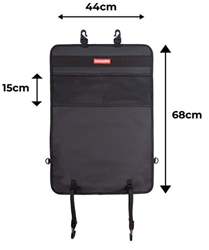 ✅ PRAKTISCHES DESIGN – Bei unserem Rücklehnenschutz haben wir bewusst auf zu viele Taschen und Fächer verzichtet, damit er schön am Sitz anliegt und nicht wie andere vom Sitz herabhängt