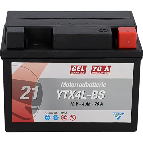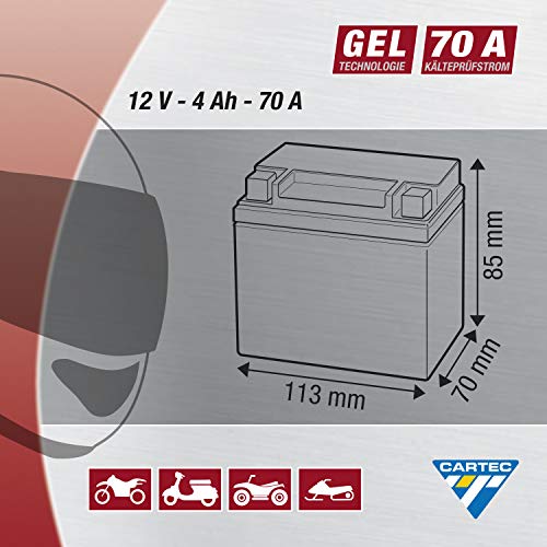CARTEC Motorradbatterie YTX4L-BS, 4Ah, 70A, Gel Technologie Motorrad-Starter-Batterie, Erstausrüsterqualität, zyklenfest, lagerfähig, wartungsfrei