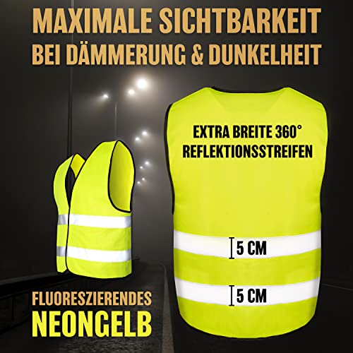 SICHERHEIT & SCHUTZ – Dank fluoreszierendem, hochreflektierendem neongelben Material und zwei starken 360° Reflektoren ist eine optimale Sichtbarkeit bei Tag, Nacht sowie Dämmerung garantiert. Dauerhafter Tragekomfort dank leichtem, komfortablen & luftdurchlässigem Material.