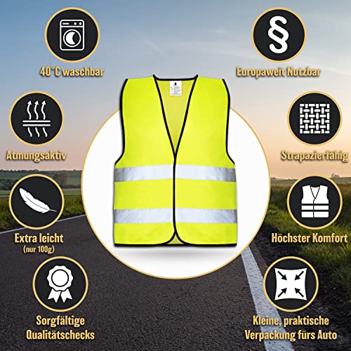 HELDENWERK Auto Warnweste 2023 4 Stück + 1 für Erwachsene europaweit einsetzbar – Reflektierende Warnwesten inkl…
