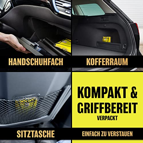 BUßGELDER VERMEIDEN – Sicherheitswesten im Auto sind Pflicht nach §35h STVZO. Dank neuester Vorschrift 2022 kommen Sie mit den Leuchtwesten sorgenfrei durch jede Kontrolle & Panne in der gesamten EU. Immer Griffbereit dank kleiner, leicht verstaubarer Verpackung.