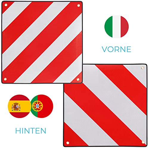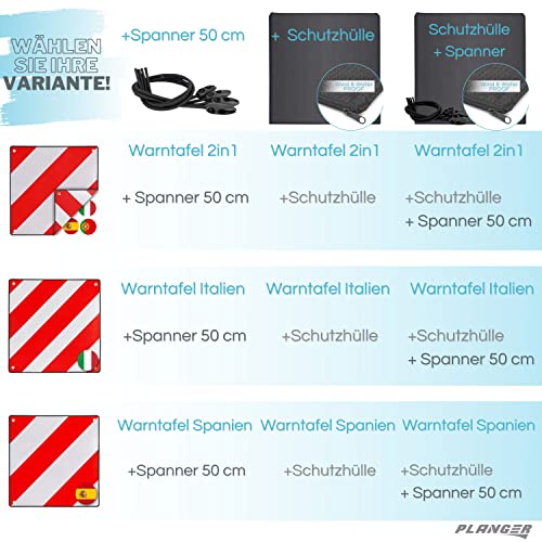 Details: PLANGER® – Warntafel Italien und Spanien 2in1 (50 x 50 cm) – Reflektierendes Warnschild rot weiß für Heckträger u…