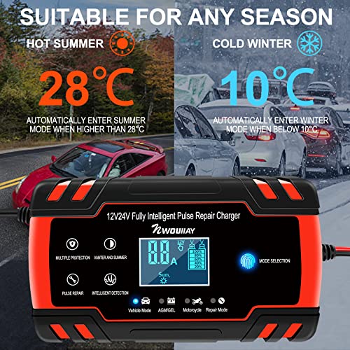 NWOUIIAY Ladegerät Autobatterie 8A 12V/24V KFZ Batterieladegerät Auto Vollautomatisches Intelligentes Geeignet für Autos…