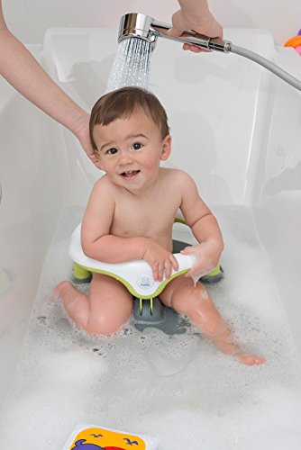 Details: Rotho Babydesign Baby Badesitz, Mit aufklappbarem Ring inkl. Kindersicherung, 7-16 Monate, Bis max. 13kg, BPA-frei, 35×31,3x22cm, Grau/Weiß/Grün