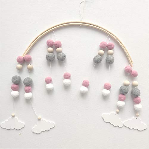 Erleuchtungsprop: Wenn Sie in einem Kinderbett hängen, können verschiedene Farben mit dem gleichen Farbton und hölzernen Federschmuck dazu beitragen, die Neugier Ihres Babys zu wecken, die visuelle Fähigkeit Ihres Babys zur Beurteilung der Farbe zu entwickeln und die körperliche Flexibilität und Griffigkeit des Babys beim Spielen mit den mobilen Filzbällen zu trainieren.