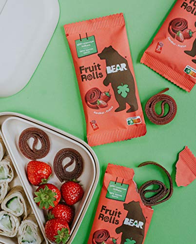 Details: BEAR Fruchtrollen Erdbeere | 100% Natürliche Inhaltsstoffe | Ohne Zusatz von Zucker | Gesunder Snack für Kinder & Erwachsene | 18 Beutel x 20g | 360g