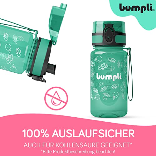 Details: bumpli® Trinkflasche Kinder 350ml – trinkflasche Kohlensäure geeignet, auslaufsicher, BPA-frei – Leicht & robust mit Gratis Strohhalmdeckel