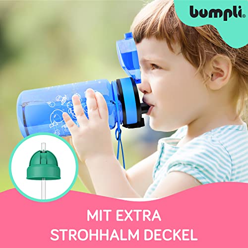 bumpli® Trinkflasche Kinder 350ml – trinkflasche Kohlensäure geeignet, auslaufsicher, BPA-frei – Leicht & robust mit Gratis Strohhalmdeckel
