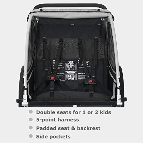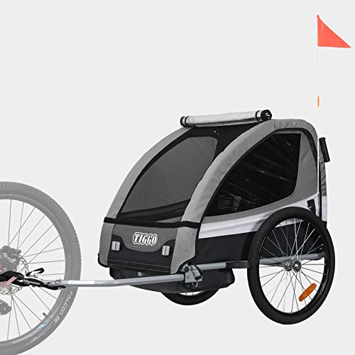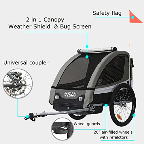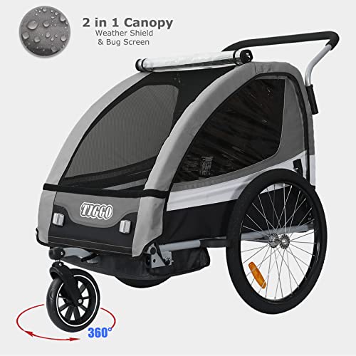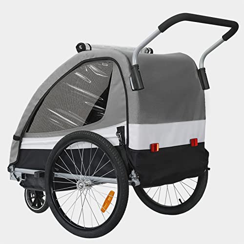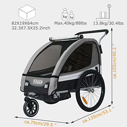 Tiggo Kinderanhänger Jogger 2 in 1 Kinderfahrradanhänger Fahrradanhänger Anhänger 50402 (Grau)