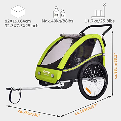 Details: Tiggo VS 2 in 1 Kinderanhänger Fahrradanhänger Anhänger mit Buggy Set Jogger 50202-02 grün