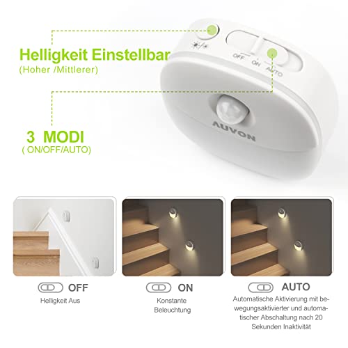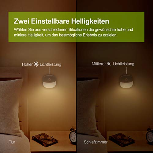 Details: AUVON LED Nachtlicht mit Bewegungsmelder, Aufladbar USB Nachtlicht Kinder mit 3 Modi (Auto/ON/OFF), Warmes weißes Nachtlampe für Kinderzimmer, Schlafzimmer, Badezimmer, Gang [2 Stück]