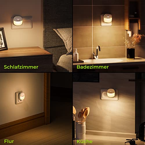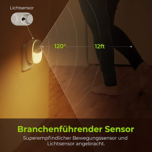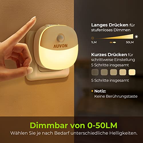 Details: AUVON Nachtlicht Steckdose mit Bewegungssensor und Dämmerungssensor, Warmweißes LED Nachtlicht mit 1-50 lm einstellbarer Helligkeit für Kinderzimmer, Schlafzimmer, Gang, Küche [2Stück]