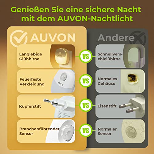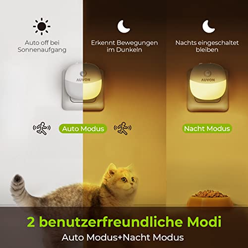 ENERGIESPARENDES INTELLIGENTES NACHTLICHT. AUVON Smart Nachtlicht steckdose verfügt über 2 Modi, die von einem unabhängig arbeitenden Dämmerungs- bis Morgendämmerungssensor und Bewegungssensor betrieben werden, der perfekt für Badezimmer, Flur, Treppen, Schlafzimmer, Kinderzimmer, Küche usw. ist. Außerdem spart das AUVON Bewegungsmelder-Nachtlichtern bis zu 84 % Energie im Vergleich zu Nachtlichtern ohne Bewegung