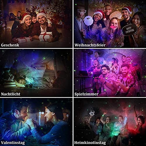 【Tolles Geschenk für Kinder und Erwachsene】 Dieser Sternenhimmelprojektor verwandelt Ihr Schlafzimmer lautlos in einem sternenklaren Raum. Die farbenfrohe Sternprojektorlampe schafft auch eine entspannte Atmosphäre, geeignet für Kinder- und Erwachsenengeburtstagsfeiern, Kindertagsgeschenke, Weihnachtsfeiern und Hochzeitsdekorationen. Es kann auch als eine romantische Nachtlampe und ein Innendekorationslicht verwendet werden.