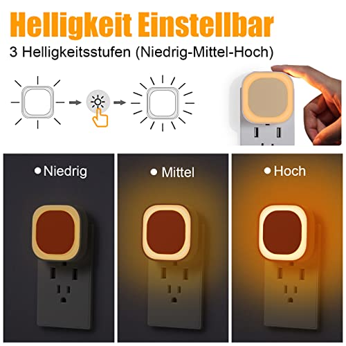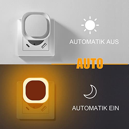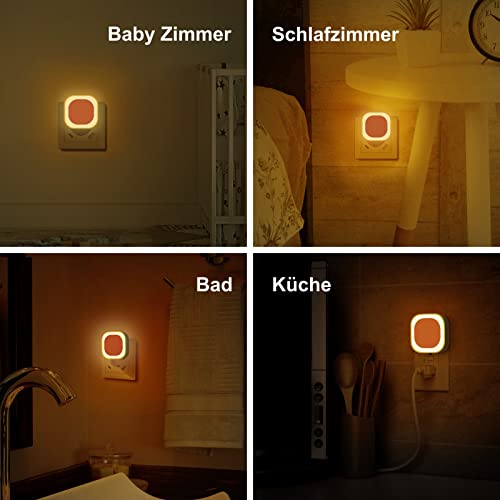 YUNLEX Nachtlichter, 2er Set, 3-stufig Einstellbar Nachtlicht mit Dämmerungssensor, Indirektes Licht, Automatisch Steckdosenlicht für Baby, Kinderzimmer, Schlafzimmer, Küche, Flur, Treppen, Amber