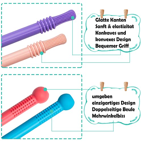 【Beißröhrchen Baby】Beißring Baby hat ein hohles Design, 6,3 Zoll in der Länge und Durchmesser (0,3 Zoll), so dass Kleinkinder den Beißstab leicht greifen können. Zwei verschiedene Rippentexturen an beiden Enden können das Zahnfleisch effektiv massieren, Zahnungsreizungen lindern und die Kaufähigkeit fördern.