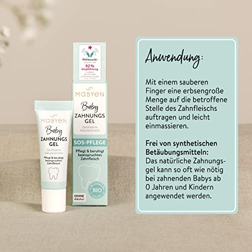 MABYEN Baby Zahnungsgel Säuglinge 10ml | Zahnfleisch Gel aus pflegenden Inhaltsstoffen – Ohne Alkohol – Zahnungshilfe Baby für beanspruchtes Zahnfleisch – SOS-Pflege beim Zahnen