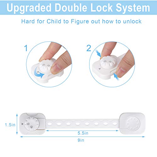 Verbessertes Doppelschloss-System: Babyschrankschloss-Designs mit Doppelschloss-System, die Kinder oder Haustiere davon abhalten, Türen oder Schubladen zu öffnen und sie an einem sicheren Ort zu halten. Die Kindersicherheitstürschlösser bieten Ihren Kindern eine sichere Kindheit.