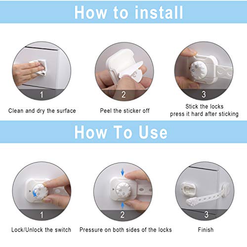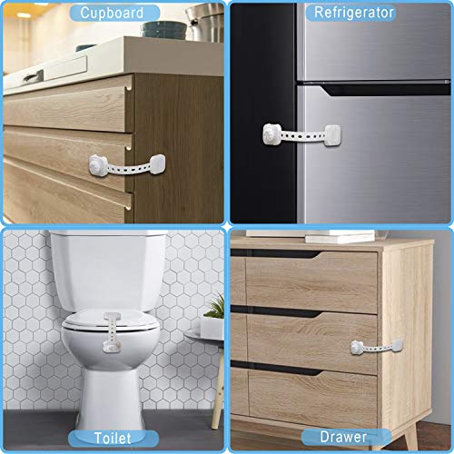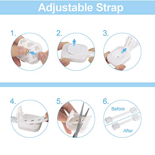 Details: Kindersicherung(Verbessert), 6er Pack Verstellbare Kinder Sicherheits-Schlösser mit 3M Kleber, für Schränke, Schubladen…