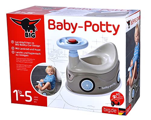 BIG-Baby-Potty grau – Lerntöpfchen im BIG-Bobby-Car Design mit abnehmbarem Lenkrad und hoher Rückenlehne…