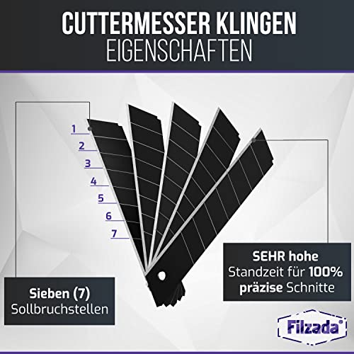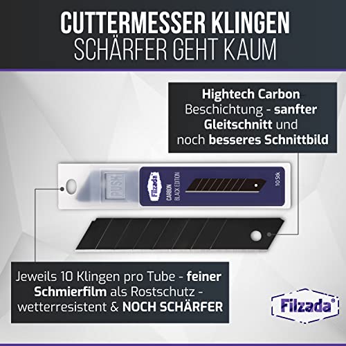 Filzada ® 50x Cuttermesser Klingen 18mm – Abbrechklinge/Messerklinge Carbonstahl – Black Ultrascharf