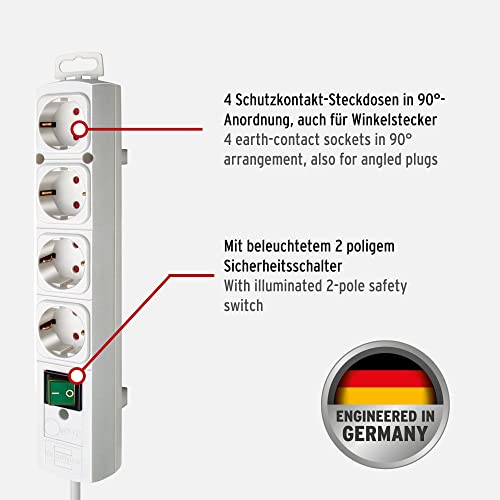 Details: Brennenstuhl Comfort-Line Plus, Steckdosenleiste 4-Fach (Steckerleiste mit Flachstecker und Schalter, Mehrfachsteckdose mit 2m Kabel und extra Breiten Abständen der Steckdosen) weiß