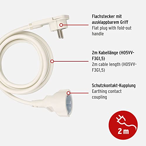 Details: Brennenstuhl Qualitäts-Kunststoff-Verlängerungskabel mit Flachstecker (Verlängerungskabel flach für innen mit 2m Kabel) weiß