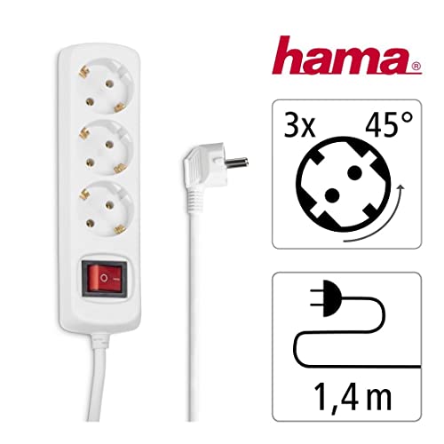 Details: Hama Steckdosenleiste 3-fach (Mehrfachsteckdose mit Save Energy-Schalter zum Stromsparen, Steckplätze 45 Grad gedreht, Kabel 1,4m, GS geprüft, Mehrfachstecker für Home Office) weiß