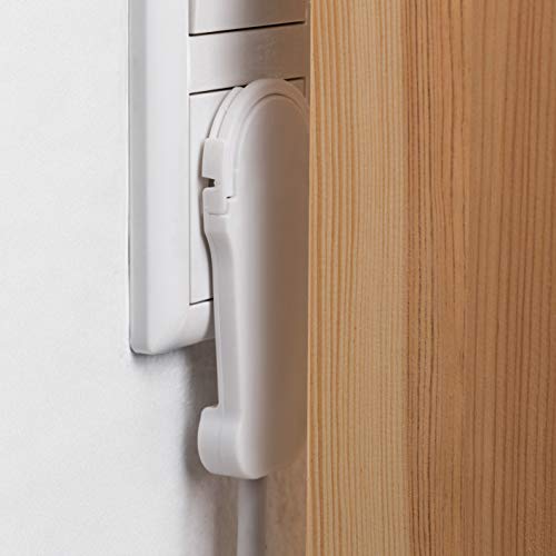 PRAKTISCHES DESIGN: Dank 7 mm dünnem Stecker lassen sich Möbelstücke komplett an die Wand schieben | Extraflacher Stecker verschwindet hinter Kommoden, Bücherregalen & Co. | Ausklappbarer Griff für einfaches Herausziehen des Steckers aus der Steckdose