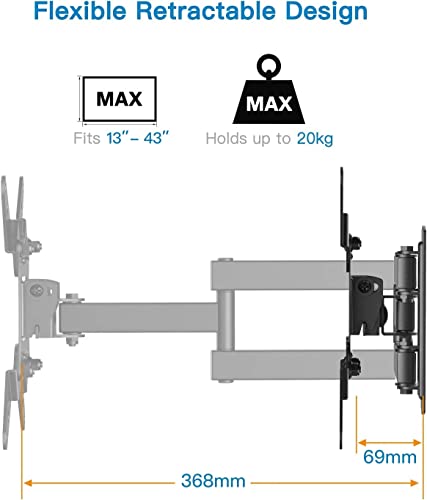 Details: PERLESMITH TV Wandhalterung, Schwenkbare Neigbare TV Halterung für 13-43 Zoll Flach & Curved Fernseher oder Monitor bis…