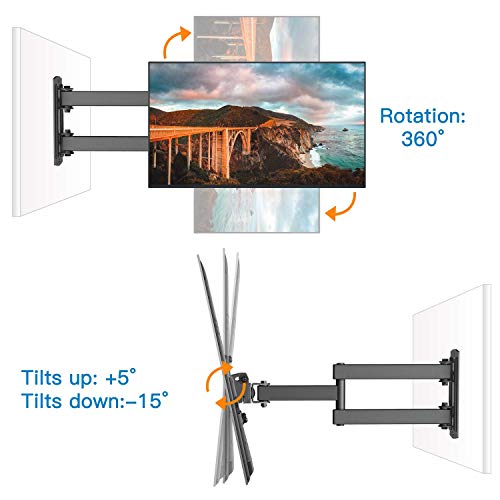 Optimaler Blickwinkel – Unsere universelle TV Halterung ist mit einer Neigung von 5° nach oben und 15°nach unten, einer Schwenkbewegung von 90°nach links oder rechts, und einer Drehung von 360 ° für eine maximale Flexibilität bei der Betrachtung ausgelegt. Wählen Sie Ihren perfekten Winkel, um den Bildschirm von der besten und bequemsten Position im Raum aus zu sehen