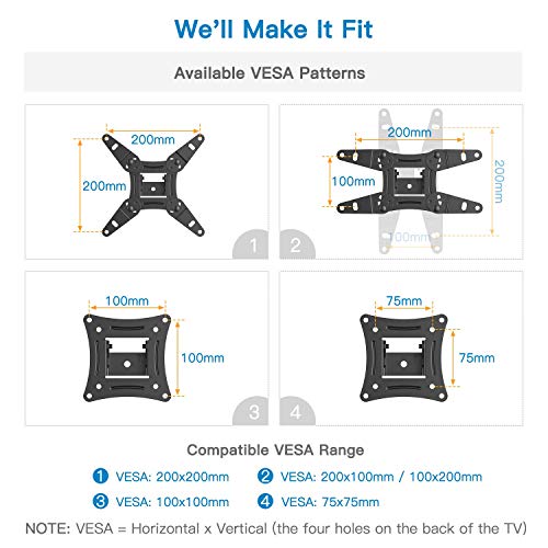 Universelle Kompatibilität – Perlesmith TV Wandhalterung ist geeignet für die meisten 13- 43 Zoll Flach&Curved Fernseher bis zu 20kg. Kompatible VESA 75X75/100X100/100×200/200×100/200x200mm. Bitte überprüfen Sie die Größe, das Gewicht und den VESA Ihres Fernsehrs vor Kauf