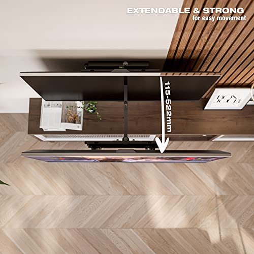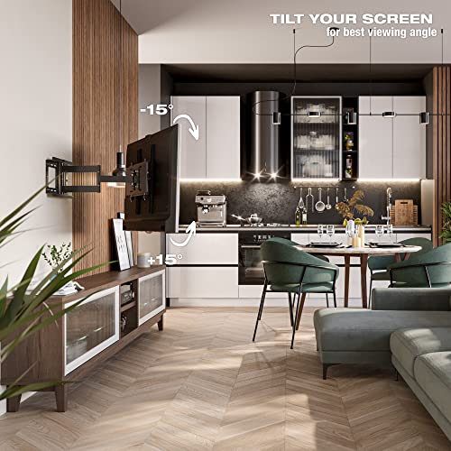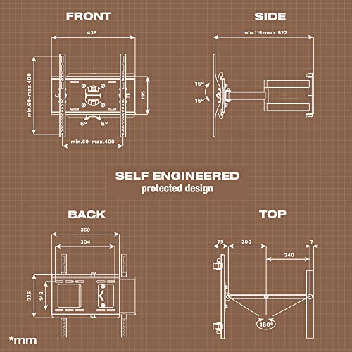 𝗙𝗨𝗡𝗞𝗧𝗜𝗢𝗡𝗘𝗡: Diese Fernseherhalterung ist bis +/- 90 Grad schwenkbar wenn Bildschirmbreite max 80cm. Der Neigebereich liegt bei +/- 15 Grad. Wandabstand zwischen 115mm – 522mm. Zur optimalen Einstellung nach der Montage ist die Frontplatte um +/- 6 Grad drehbar