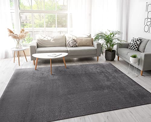 Paco Home Waschbarer Teppich Wohnzimmer Schlafzimmer Kurzflor rutschfest Flauschig Weich Moderne Einfarbige Muster, Grösse:120×170 cm, Farbe:Anthrazit
