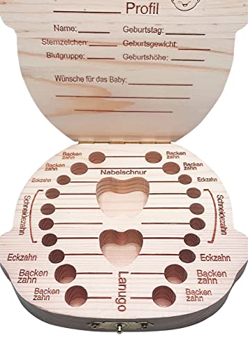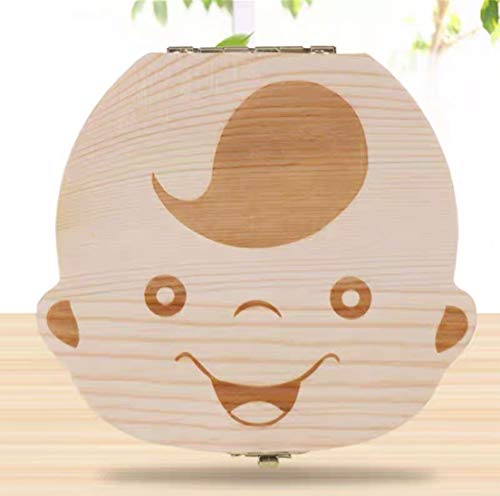 Details: Sonfedo Milch Zähne Box, Zähne speichern Box für Kinder und Mädchen, Holz Speicher Baby Zähne Aufbewahrungsbox Geschenk, Deutsch Version (Junge)