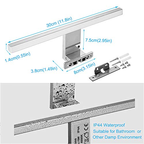 Details: Aogled Led Spiegelleuchte Badezimmer 5W 400LM 30cm 230V Neutralweiß 4000K,3-in-1 IP44 Wasserdicht Klasse II Spiegellampe Bad,Kein Flimmern,Nicht Dimmbare Badleuchte Wandbeleuchtung 300mm