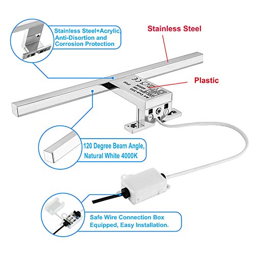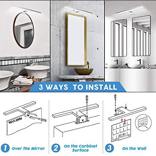❤【IP44 Waterproof Level Badezimmerspiegelleuchte 5W】: Diese Überspiegellampe ist aus Edelstahl + Kunststoff (Acryl) gefertigt. Das spritzwassergeschützte Laufwerk und die Schutzart IP44 machen es spritzwassergeschützt und beschlagfrei. Das Spiegellicht kann in Badezimmern oder anderen feuchten Innenbereichen verwendet werden. Wie Spiegelschrank, Badezimmer, Spiegel, Lav, Garderobe, Schrankspiegellichter, Zuhause, Hotels, Büros, Arbeitsstationen und architektonische Badezimmerbeleuchtung usw.