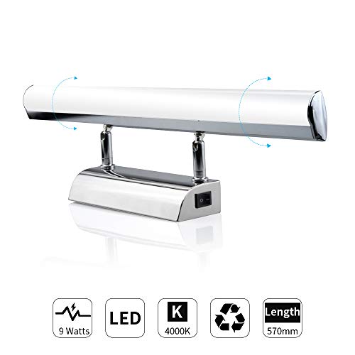 Details: Luxvista Spiegellampe 9W 57cm LED Badleuchte 230V Aufbauleuchte Neutralweiß 4000K IP65 Badezimmer Lampe Schminklicht SchrankLampe mit Schalter Wandleuchte aus Edelstahl 1-Stück