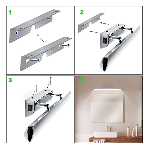【Einfach zu installieren】Die Länge der Spiegelleuchte ist 570MM und der Abstrahlwinkel ist 120°. Perfekt für die Wandmontage über dem Spiegel im Badezimmer. Das weiche natürliche Licht schützt die Augen und emittiert kein Quecksilber, Blei, UV- oder Wärmestrahlen. Kein Flimmern und kein Blitz. Hinweis: Mit Schrauben und Montageplatte im Paket enthalten.