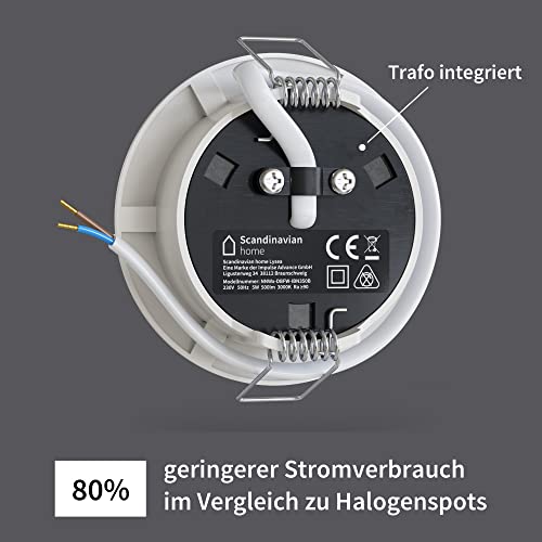 Details: Scandinavian home 3er Set LED Einbaustrahler 230V 60mm – 70mm I Badezimmer geeignet I warmweiß CRI 90 4,5W 500lm 3000K 68mm I Weiß-Matt mit Milchglas I LED Spot Deckeneinbauleuchte flach