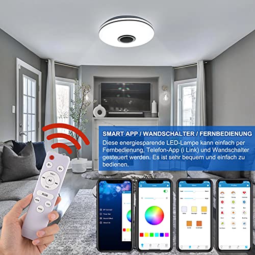 Gindoly 36W LED Deckenleuchte Dimmbar mit Bluetooth Lautsprecher,LED Deckenlampe mit Fernbedienung oder APP-Steuerung…