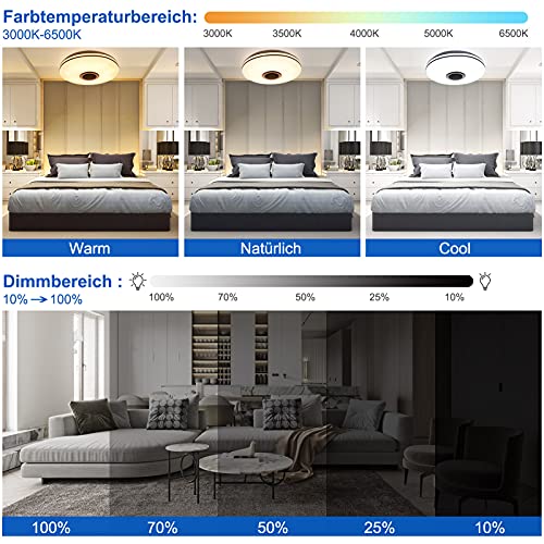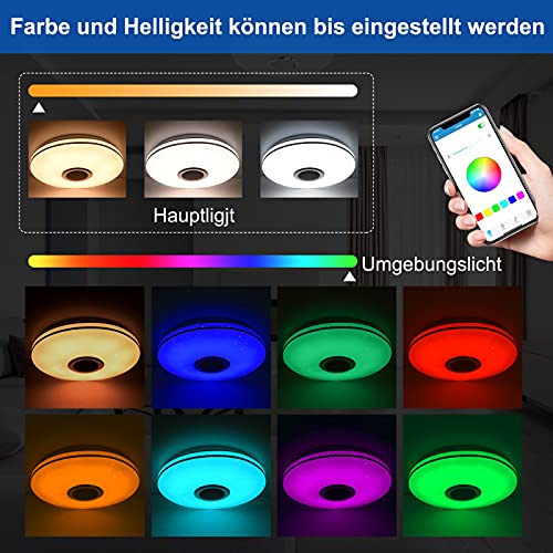 Details: Gindoly 36W LED Deckenleuchte Dimmbar mit Bluetooth Lautsprecher,LED Deckenlampe mit Fernbedienung oder APP-Steuerung…