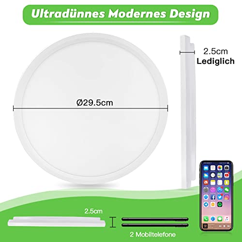 Details: Wholede 24W 3000LM Led Deckenleuchte Flach, Deckenlampe Rund Dimmbar mit Fernbedienung, 3000-6500K Ultra Dünn Lampe für Küche Wohnzimmer Flur Schlafzimmer Badezimmer, Ø29.5cm (Weiß-1 Stücke)
