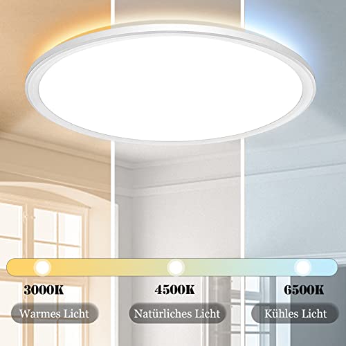 Helligkeit Dimmbar & 3 Farbtemperaturen ➤ Deckenlampe hat 3 Arten von Farbtemperatur (Warmweiß 3000K, Naturweiß 4500K, Tageslichtweiß 6500K), der Helligkeitsbereich kann auch zwischen 10%-100% eingestellt werden.