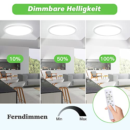 Wholede 24W 3000LM Led Deckenleuchte Flach, Deckenlampe Rund Dimmbar mit Fernbedienung, 3000-6500K Ultra Dünn Lampe für Küche Wohnzimmer Flur Schlafzimmer Badezimmer, Ø29.5cm (Weiß-1 Stücke)