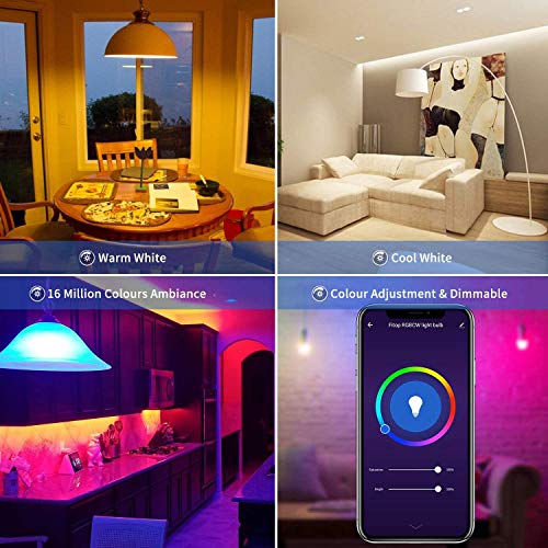 Details: Fitop Alexa Glühbirne Smart Lampe E27, WLAN Lampe LED Kompatibel mit Alexa/Google Home, 9W, Dimmbar Warmweiß-Kaltweiß und Mehrfarbige Birne, Kontrolle durch APP, Kein Hub Benötigt, 2 Stück