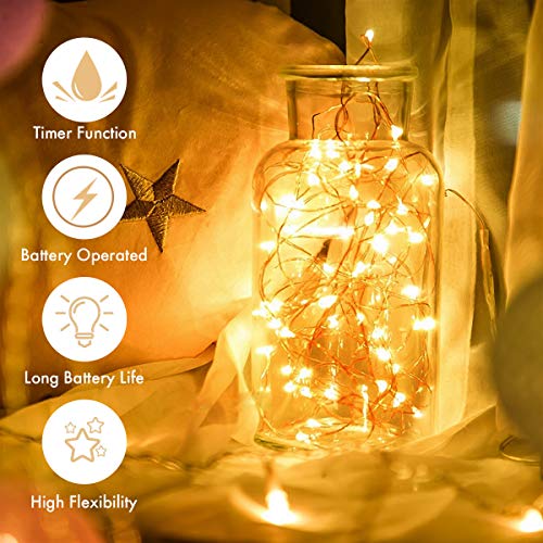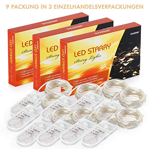 Details: innotree Aufgerüstet 9er-Pack Lichterketten mit Timer, Batterie Kupfer Drahtlichterkette 2M 20 LEDs Lichterketten…