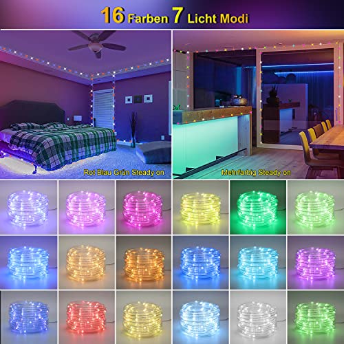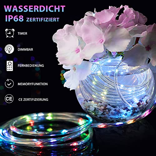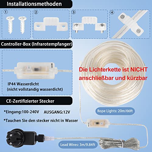Details: 20M LED Schlauch Lichterkette Außen Strom, 200er LED Lichtschlauch Außen Warmweiß & Bunt, 30 Farben Weihnachtsbeleuchtung Außen, IP68 Patio Lichterschlauch mit Fernbedienung für Outdoor Garten Balkon