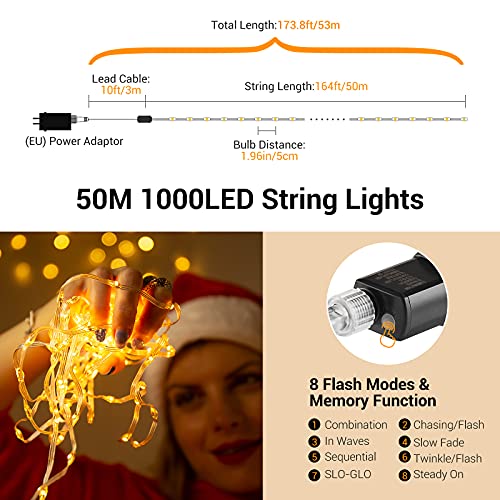 Details: 50M LED Lichtschlauch, GlobaLink 1000er LED Weihnachtsbeleuchtung Außen Strom IP65 Wasserdicht, Schlauch Lichterkette…
